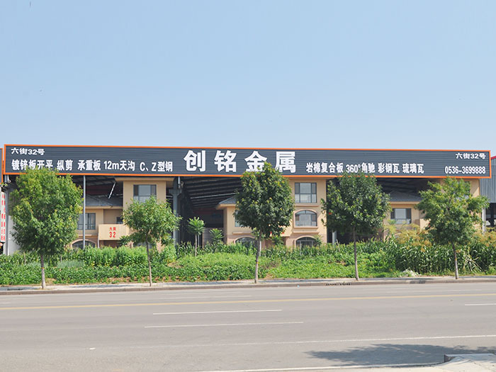 濰坊創(chuàng)銘金屬制品有限公司位于山東臨朐江北物流城,地理位置好。是本地區(qū)一家集鍍鋅板卷材、鍍鋅板開平、縱剪、樓層承重板、12米天溝、C、Z型鋼、彩鋼瓦、巖棉復合板、剪板折彎等產品及板材批發(fā)、零售、加工、配送的公司。
